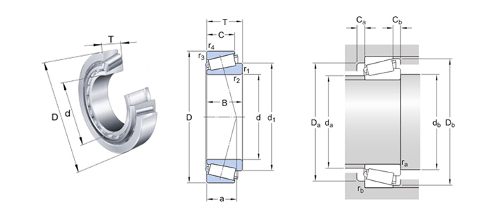 單列圓錐滾子軸承可以承受徑向載荷和單一方向軸向載荷,軸向載荷的能力取決于接觸角,即外圈滾道角度,角度越大,軸向載荷能力也越大。當(dāng)軸承承受徑向載荷時(shí),將會(huì)產(chǎn)生一個(gè)軸向分力,所以當(dāng)需要另一個(gè)可承受反方向軸向力的軸承來加以平衡,與角接觸球軸承相比,承載能力增大,極限轉(zhuǎn)速降低。